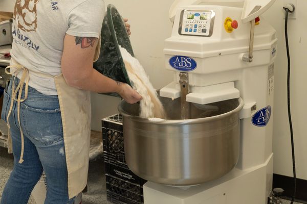 The Tell City Pretzels twisting machine is from Frankfurt, Germany. Maintaining the European Tradition, Pretzel Baker Brad went to Frankfurt to see the twisting machines in European bakeries, sourcing a machine that could replicate the artisan look of the hand crafted pretzels.